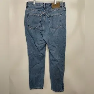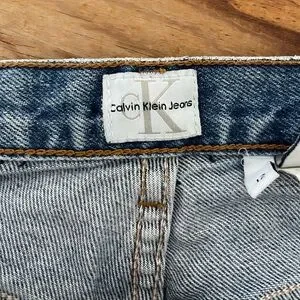 Vintage Calvin Klein medium wash high rise straight leg jeans. Trendy 90s mom-style with large back patch. Not much stretch. Marked women’s size 12, but these fit more like a modern 8, so please check measurements below. In excellent vintage condition, no flaws. Smoke free home.