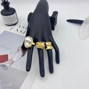 Discover the elegance of this gold and pearl ring set. Perfect for adding a touch of sophistication to any outfit.