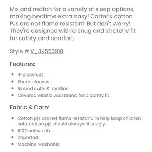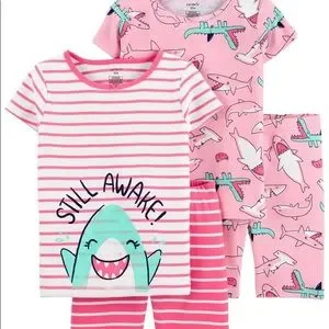 NWT CARTERS GIRLS 4-Piece Sharks 100% Snug Fit Cotton PJs