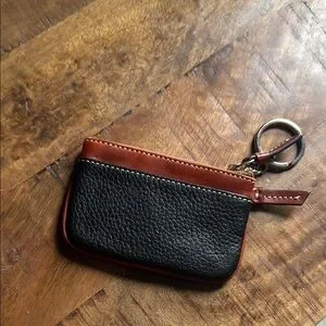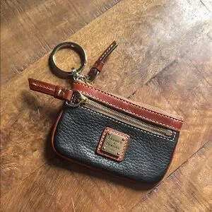 Dooney & Bourke Black and Tan Leather Keychain Wallet