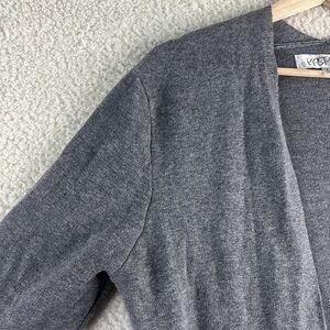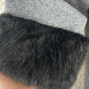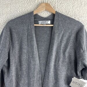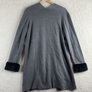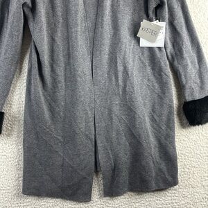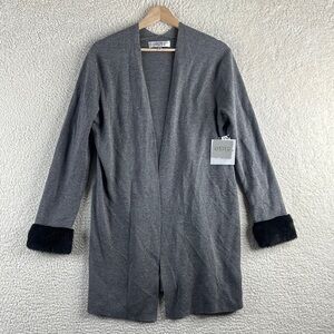 NWT Kasper Womens Gray Faux Fur Trim Cuff Open-Front Cardigan Sweater M MEDIUM