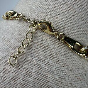Gold Tone Curb Chain with Rhinestones Necklace 18"