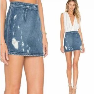 Lovers + Friends like new Ryder 100% cotton indigo blue denim distressed skirt
