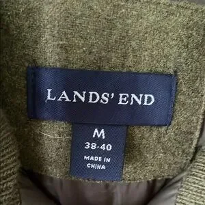 Lands' End Men's M Wool Olive Green Quilted Puffer Vest Fall Layering Warm