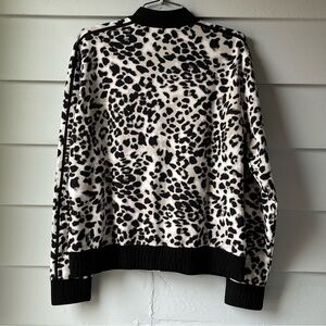 Stylish leopard print jacket for women. Features a chic black and white design, perfect for any occasion.