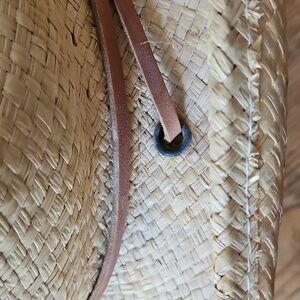 Woman's Stetson U.S.A. X-Large 7 1/2- 7 5/8 Straw Cowboy Hat Leather Chin Strap