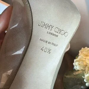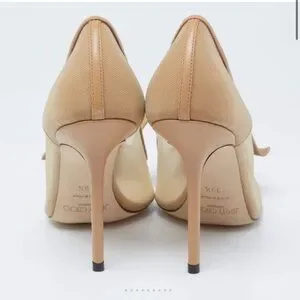 Step into sophistication with these Jimmy Choo heels, featuring a sleek pointed toe and a high stiletto heel. The smooth tan finish offers a versatile touch, making them ideal for both formal and business settings. Enjoy the minimalist elegance and timeless appeal of these slip-on shoes. Size is ;0.5 like 10 US gorgeous pumps in like new conditions only use once in a indoor area .