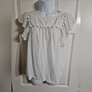 Jennifer & Grace Women’s Medium Boho Cottagecore White Eyelet Ruffle Blouse Top