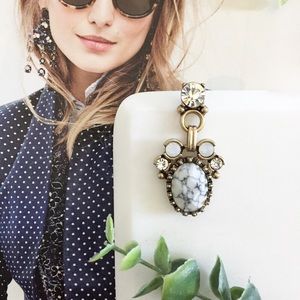 Sophisticated & chic, the "Linnéa" gem drop earrings are ideal for weddings, prom, or a holiday soirée! With their dangling white & black faux-marble embellishments, you're sure to turn heads in these jewel statement earrings. These dainty beauties feature faceted faux-marble, iridescent white, & clear crystal rhinestones set in antique gold colored zinc alloy. They are stud earrings with push backs. Marble patterns vary. New with protective packaging.