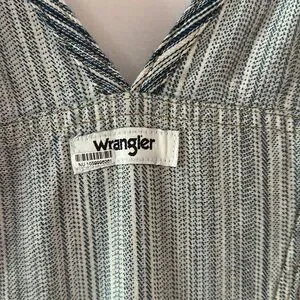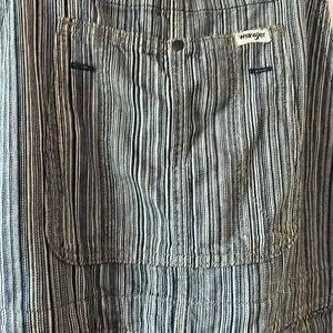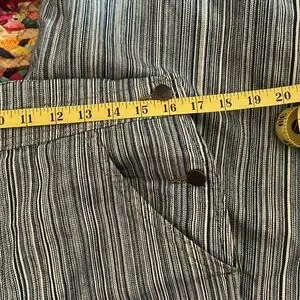 Gently used, worn once. Wrangler. Railroad stripe, straight leg overalls. Inseam is approximately 28” and high waist is about 17”. I usually wear a 10-12 in jeans and these have plenty of room. In the Wrangler size page a medium equates to a size 8-10 or about 30-31…you can look that up too.