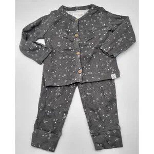 LITTLE PLANET BY CARTER'S Organic 2 PC Set Gray Stars Pants Button Up Top 9M