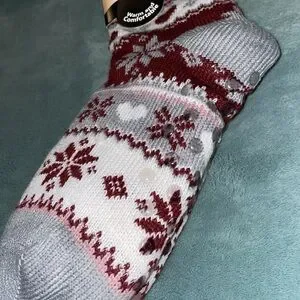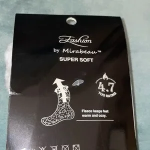 NWT BY MIRABEAU Warm thermal knit socks with a festive pattern. Features gray and red colors with a fluffy white cuff. 1 size fits all. 50% Polyester, 45% Acrylic & 5% Spandex. Smoke & Pet free home.
