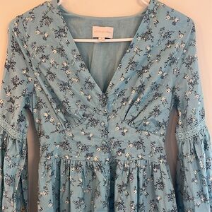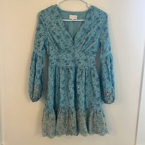 Anthropologie x A Collective Story Blue Floral Embroidered Eyelet Dress- S