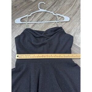 The CITY Triangles Juniors 5 Draped Neckline Short Dress in Black Glow is a stylish and elegant choice for formal occasions like weddings, parties, or cocktails. The dress features a flattering fit and flare style with a short length and a zippered closure for easy wear. Made from a nylon blend fabric with a touch of glitter accents, this dress is perfect for adding a touch of glam to your wardrobe. The sleeveless design with a strappy sleeve detail adds a touch of sophistication, making it a versatile and chic option for any season.