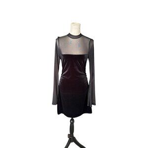 Wild Fable Cutie Black Velvet Mesh Long Sleeve Mini Dress LBD Goth Sexy S NWOT