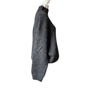 KNIT MIX Boxy Oversized Mock Turtleneck Sweater in Black LARGE, NWT