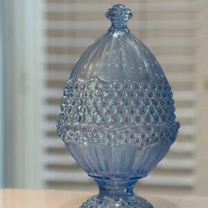 Gorham Crystal Periwinkle Blue Hobnail Egg Shaped Candy Dish