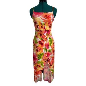 NWT Haute Monde Vibrant Floral Bodycon Split Faux Tie Dress size Small