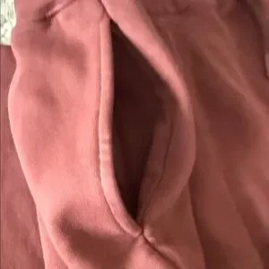 Stylish burgundy jogger pants featuring a logo detail. Comfortable and trendy.