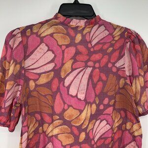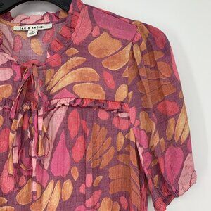 Zac & Rachel Top Womens Size Small Pink Printed Tie V Neck Short Sleeve Blouse. Great pre-owned condition.