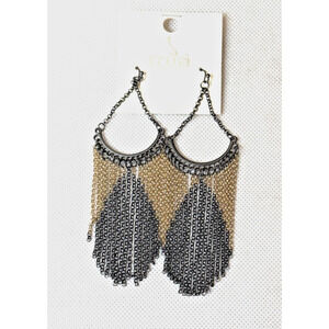 Item: Women's Earrings - Metal Tassel Look - Black/Gold - Wire Drop Hook Close