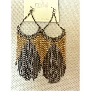 Mia Collection Earrings Metal Fringe Black Gold Wire Drop