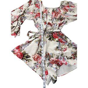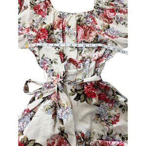 Revolve LPA Floral Belted Romper Bell Sleeves Cottagecore Linen Blend Size M