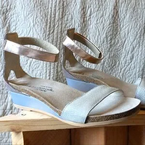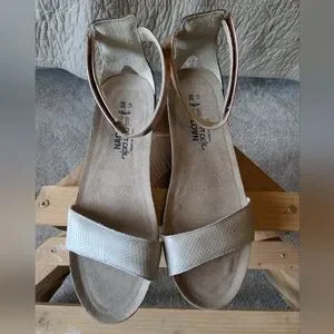 Step out in style with these elegant women's sandals featuring a chic ankle strap. Perfect for any occasion, these sandals offer comfort and sophistication. Worn maybe twice, in very good condition.