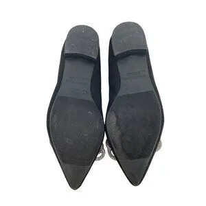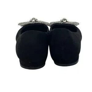 Dominique Nicole Womens Black Flats With Rhinestone Bow Embellishment Size 8M