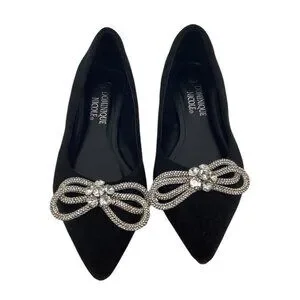 These Dominique Nicole flats offer a sophisticated touch with their elegant rhinestone bow embellishments. Crafted in black suede, they provide a chic and classic look, ideal for business settings. The pointed toe design ensures comfort and style, while the flat heel offers a practical choice for all-day wear.