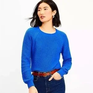 LOFT Textured Crewneck Sweater in 100% cotton; machine wash. Raglan sleeves, ribbed cuffs, hem,