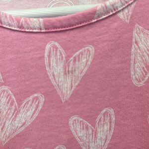 This sleeveless skater dress features a playful heart pattern in pink and white, perfect for a casual summer day. The sleeveless design and round neckline offer a comfortable fit, while the light fabric ensures breathability. Ideal for warm weather, this dress adds a fun touch to any day. Very light staining as shown in pic.