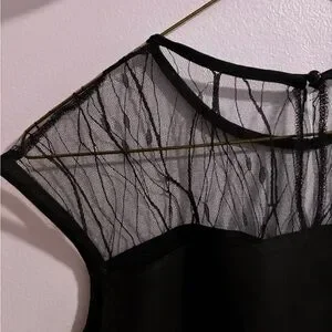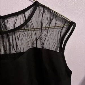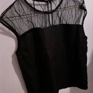 This elegant black sheer top is perfect for any occasion. Its stylish design offers a sophisticated look.