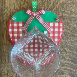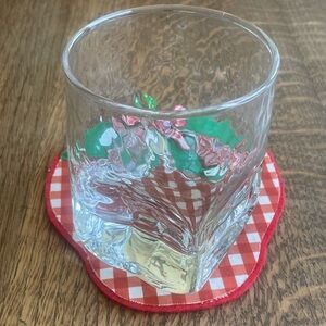 New handcrafted charming red gingham strawberry coasters or ornaments. Perfect for adding a playful touch to any room. 6” x 5” in size.