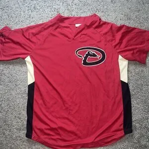 Arizona Diamondback Reynolds #27 Size L Red Replica Jersey is an officially licensed baseball fan apparel featuring the player Reynolds from the Major League (MLB) team Arizona Diamondbacks. The unisex adult jersey in size L is designed in a vibrant red color, making it a stylish choice for fans to wear during the regular season. Made by the brand Right Brain
