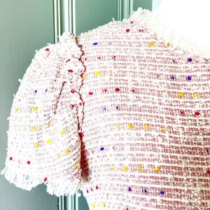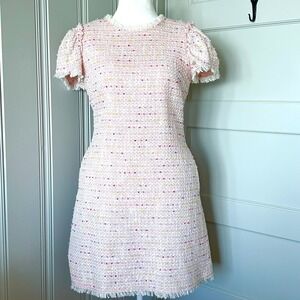 Kate Spade NY Tweed Fringe Colorful Trimmed Mini Dress Pink Puff Sleeve Size 12