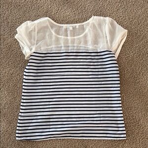 Chic white blouse with navy stripes. Short sleeves. Lightweight and stylish.