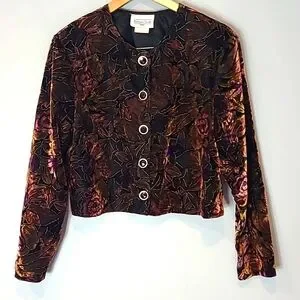 Elevate your style with this elegant women's floral velvet jacket. Featuring a rich blend of colors, this jacket is perfect for any occasion.