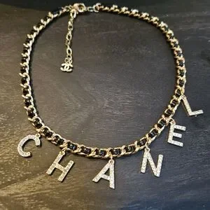 Beautiful black and gold chain-link leather with the beautiful rhinestone letters hanging from it, this is a choker style necklace that has an extension chain to adjust to a desired size.