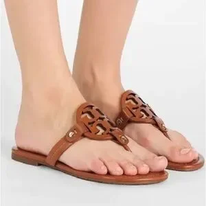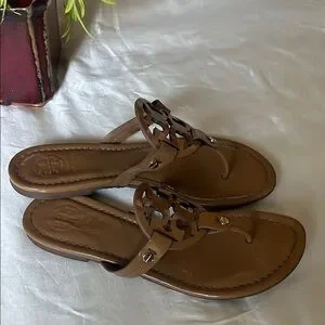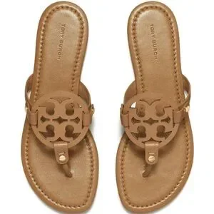 Tory Burch Miller Sandal Thong Patent Calf Leather Sandals Tan