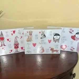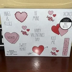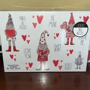 3 Valentine themed puzzles. 1000 pc each. Dog and cat , gnomes and valentines theme. WILL SEPARATE