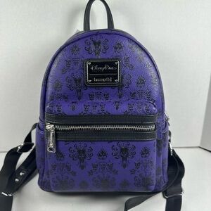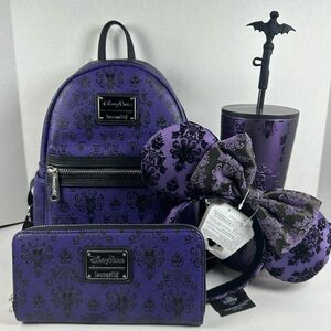 NWT Loungefly Haunted Mansion Wallpaper Bundle. Includes Mini backpack, Wallet, Starbucks Stainless Steel Tumbler, and Disney Ears