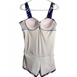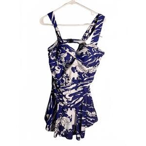One Piece Blue/White Abstract Swimsuit with Tummy Control, Skirted, Shorts XL