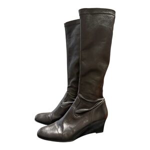 Bally Italian Leather Knee-High Wedge Boots – Black – EU 40 / US 9 BB4