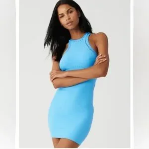 ALO Yoga Blue Sleeveless Halter Bodycon Mini Dress BNWT