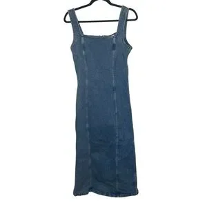 Abercrombie Denim Column Midi Dress size medium Jean sleeveless square neck