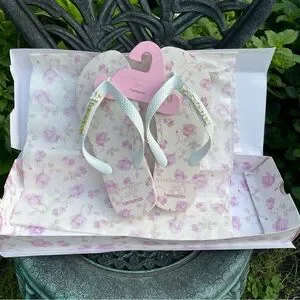 NWT LoveShackFancy x Havaianas Sterling Dusk Ribbon Rosa Flip Flops Size 7/8