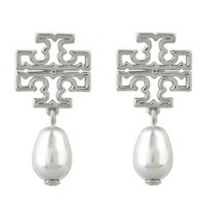 TORY BURCH • Silver Britten Logo Pearl Drop Earrings