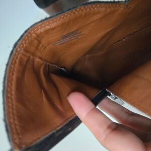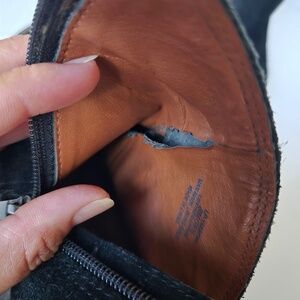 Gently used in good tp fair condition. Please review pictures and video before purchasing. Call outs: please see inside of the booties open at seams & some tears, but the ourside black suede is it good condition, no rips, tears, or stains.
