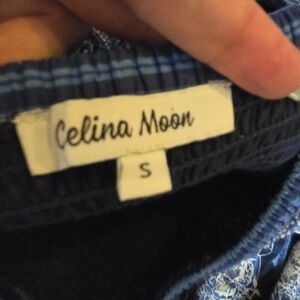 CELINA MOON Blue and White Flamingo Print Festival Skirt Small (5593)